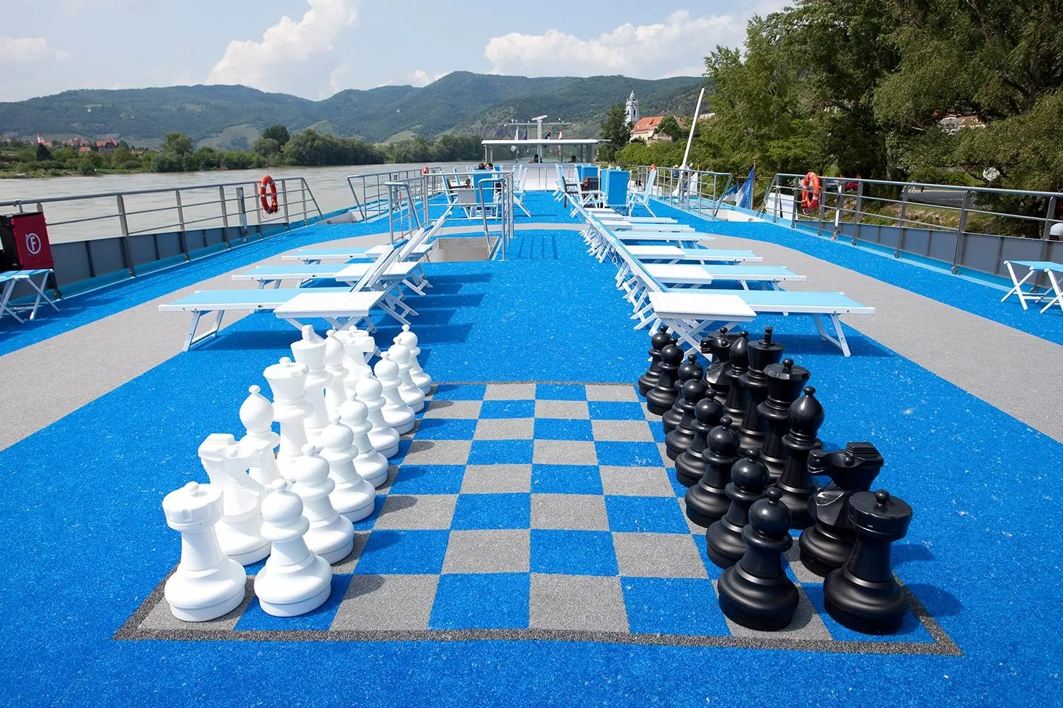Relax in the Sun Deck whirlpool as timeless castles, quaint villages, and stunning landscapes drift by in panoramic beauty.