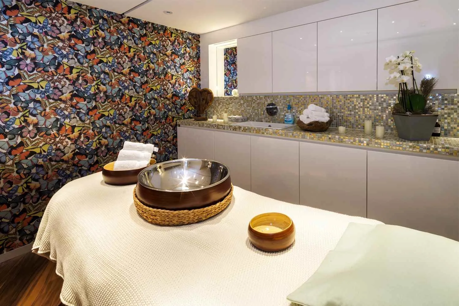 Tucked in the middle of the Piano Deck, the ship’s tranquil wellness suite offers massage services and a full-service hair salon—perfect for a little indulgence after a day of exploring.