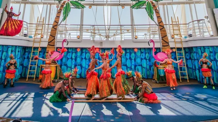 Enjoy a great space to the AquaTheater performances from your balcony. Beds Two twin beds that convert to a Royal King bed. One double sofa bed. Size Stateroom: 562 sq. ft. Balcony: 589 sq. ft.
