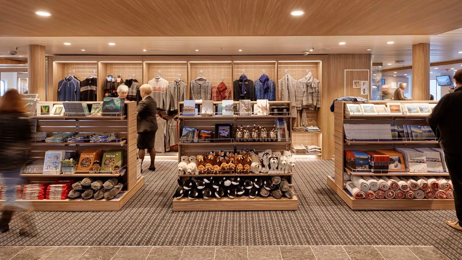 The vessel also has a large compass area were you find the reception, the Coastal Experience Team, conference room and shop. The top deck of the boat features a sun deck, observation saloon and panorama lounge, all of which provide splendid views of spectacular coastal scenery.