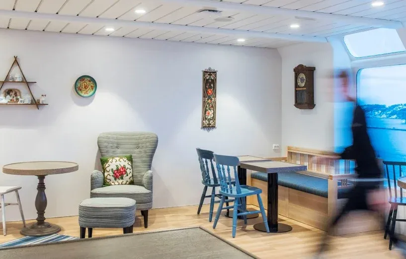 Wheelchair accessible rooms for up to two people with wider door and accessible WC. These comfortable, outside cabins for two people on the middle deck have separate beds, one of which converts into a sofa. (We have a limited number of wheelchair accessible cabins, so we ask that they are booked by guests who require these cabins.