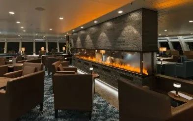 Relax in the ship’s panorama lounges and take in the unforgettable views of remarkable coastal scenery, much of it the same as when the first Hurtigruten boats sailed by more than a century ago. Beautiful art throughout the ship’s interior adds contemporary elegance to the vessel’s maritime ambience.