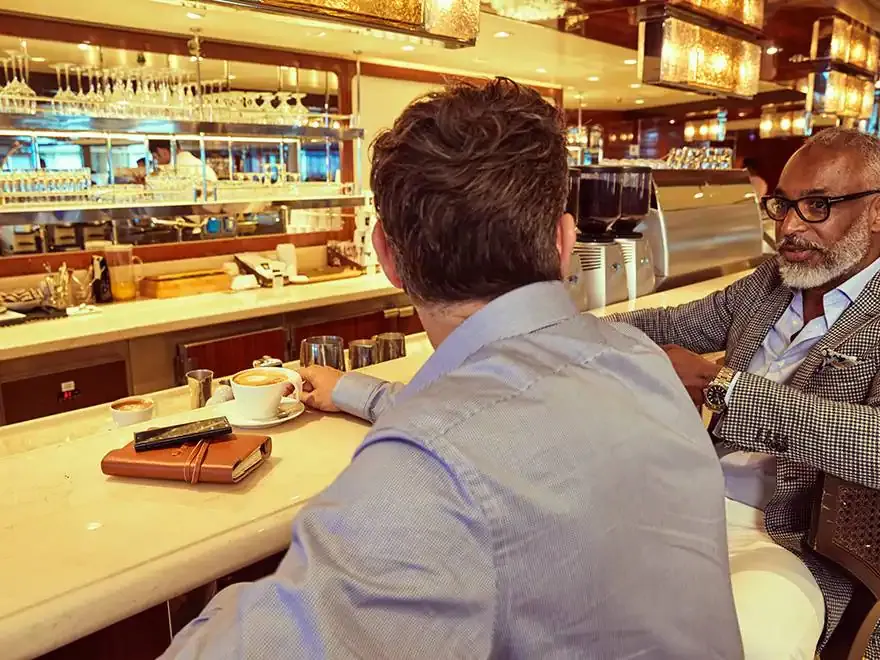 Seabourn Sojourn enchants her guests with an array of public areas scaled to encourage a relaxed sociability. One of the most unusual features of Seabourn Sojourn and her sisters is Seabourn Square, an ingenious “living room” that replaces the traditional cruise ship lobby with a welcoming lounge filled with easy chairs, sofas and cocktail tables; making it more inviting and relaxing on a small ship cruise. An enclave in its center houses knowledgeable concierges discreetly seated at individual desks.