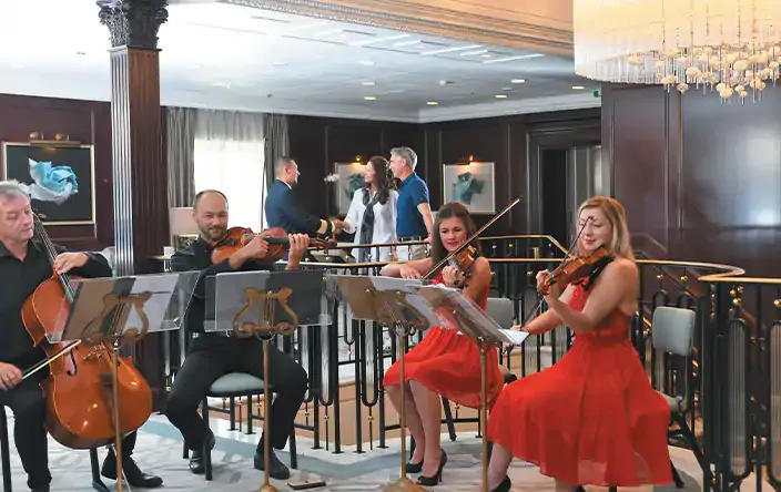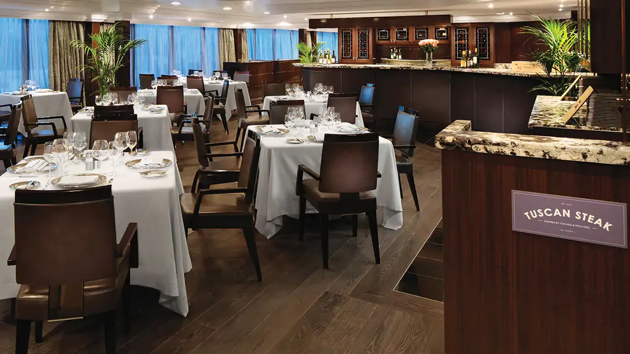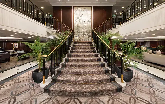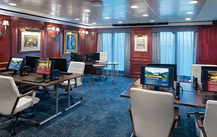 With entirely re-designed closets, dressers and vanities, these 165-squarefoot staterooms feel even …more spacious. A generous seating area, vanity desk, refrigerated mini-bar and breakfast table are perfectly complemented by the soothing hues and stylish fabrics of the sleek new decor.
