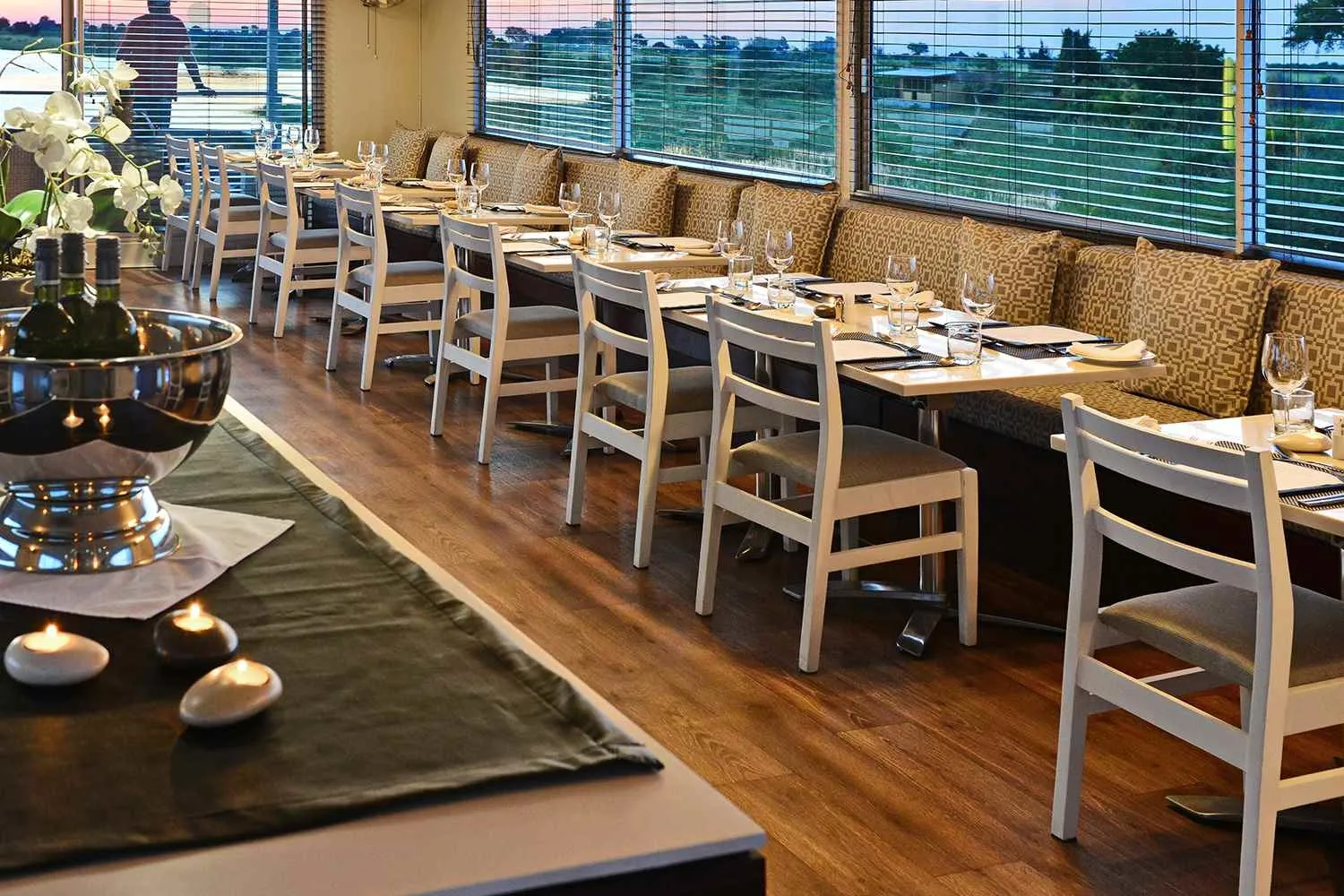 Perched on the third level of the Zambezi Queen, the elegant main restaurant surrounds guests with sweeping views of the African landscape on three sides. Here, fine dining meets the wild beauty of the Chobe River, offering an unforgettable culinary experience in a setting of refined comfort and natural splendor.